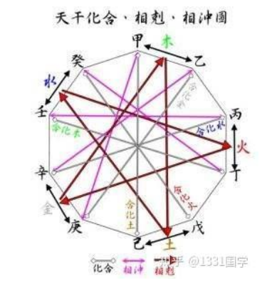 天干为什么会有五合,偏偏是这几干相合,为什么不是其他天干相合呢,其实,最早在河图洛书中,一六在下,二七在上,三八在左,四九在右,五十居中,为河图之数。北方水位,是为一六同宗;南方火位,是为二七同道;东方木位,是为三八为朋;西方金位,是为四九为友;中央土位,是为五十同途。十天干依河图之数的顺序:甲一,乙二,丙三,丁四,戊五,己六,庚七,辛八,壬九,癸十。